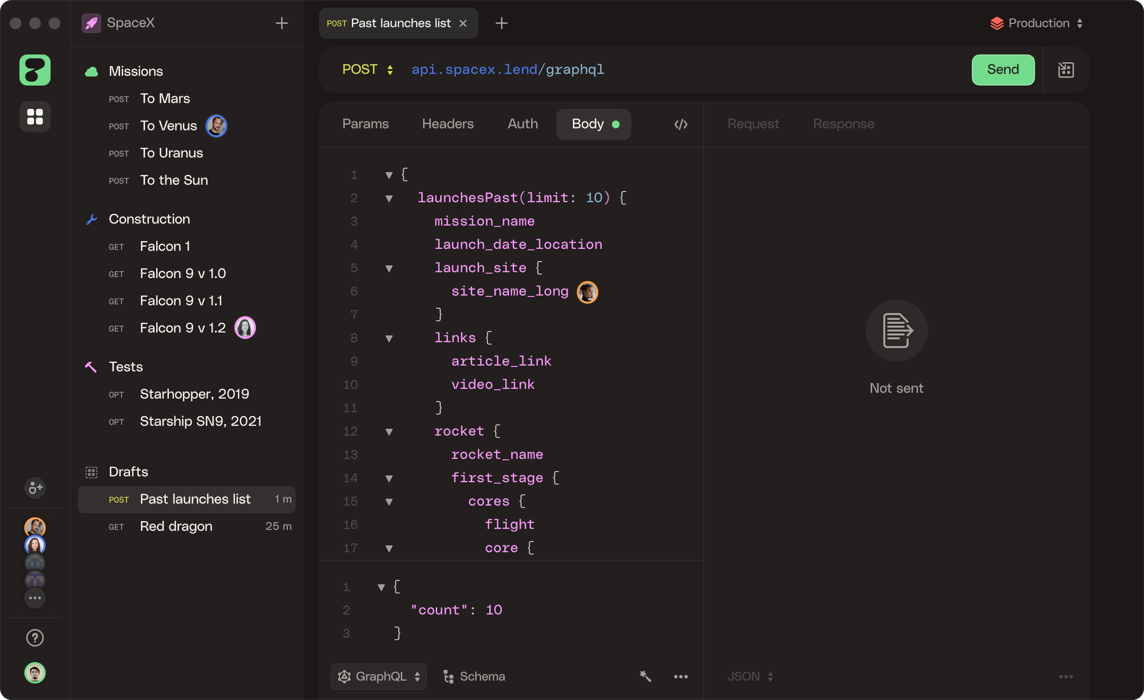 HTTPie autosaves and syncs all changes immediately, keeping your spaces up-to-date for your whole team.
