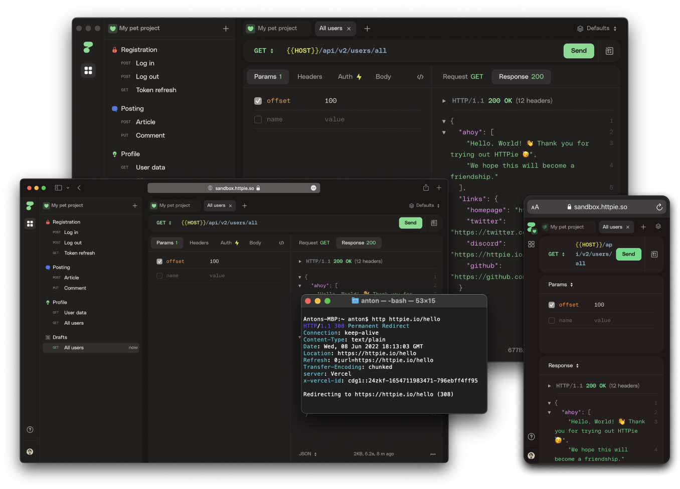 Learn moreDevelopers all around the world rely on HTTPie for API testing. Our users include the engineers behind some of the most important technology companies driving change today.